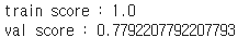 print("val score : {}".format(rf.score(x_val, y_val)))