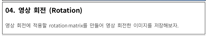 angle을 지정해서 cv2.getRotationMatrix2D()를 사용해서 이미지의 중심점, 회전할 각도, 이미지크기(scale)을 넣어서 matrix를 구성해서 warpAffine에 넣어주면 된다.