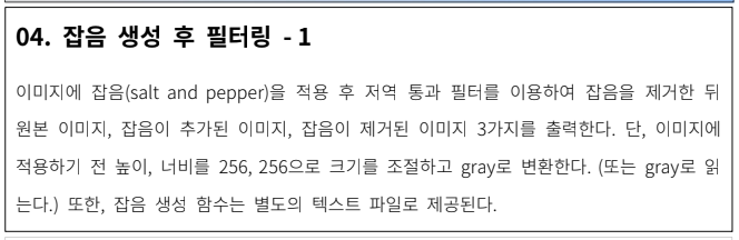 #medianBlur가 salt and pepper에 효과가 좋다.