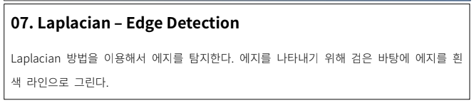 전 포스팅인 Sobel을 사용한 결과와 비교해보면 Laplacian이 좀 더 명확(?),선명하게 edge detection을 해내는 것을 확인할 수 있다.