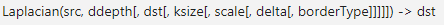 여기서 ksize는 1이거나 1보다 큰 홀수이다. ksize는 2차 미분 필터를 계산하는데 사용되는 Aerture size이다.