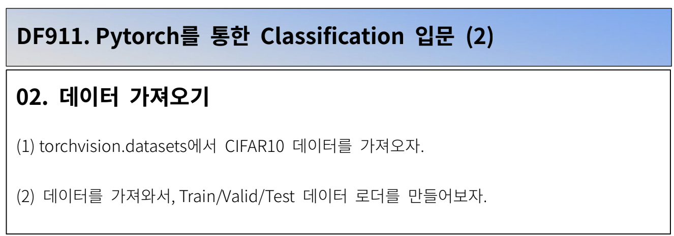 <DAFIT> 11 Pytorch를 통한 Classification 입문(2) - 02 데이터 가져오기