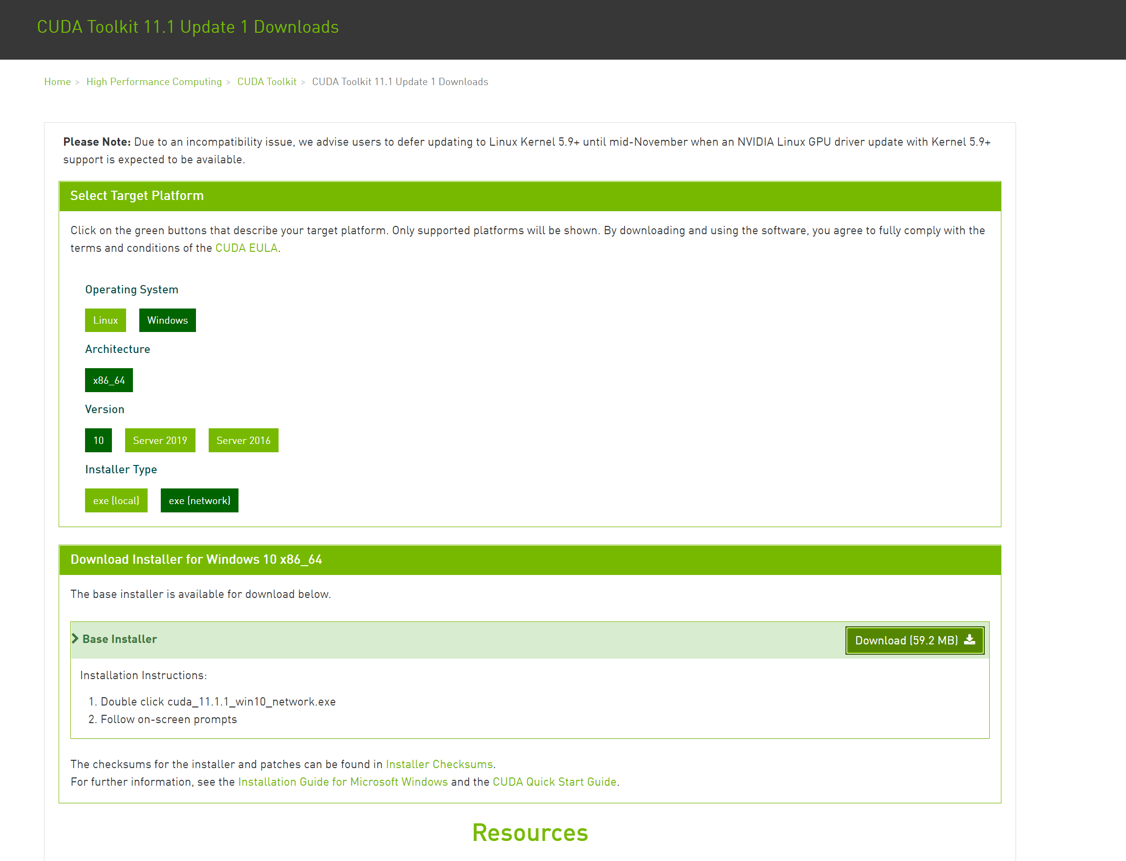 Please Note: Due to an incompatibility issue, we advise users to defer updating to Linux Kernel 5.9+ until mid-November when an NVIDIA Linux GPU driver update with Kernel 5.9+ support is expected to be available. Select Target Platform Click on the green b