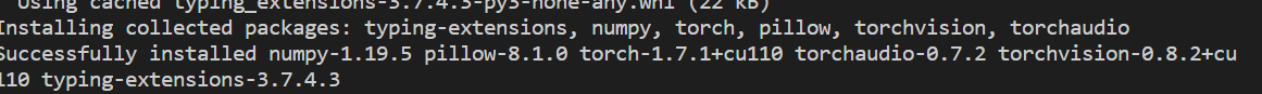 pip install torch==1.7.1+cu110 torchvision==0.8.2+cu110 torchaudio===0.7.2 -f https://download.pytorch.org/whl/torch_stable.html