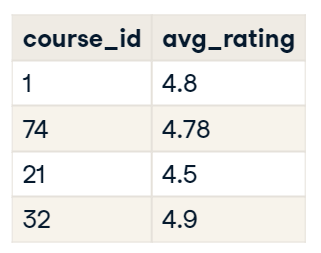 이전 시간에 각 코스의 평균 평가 점수를 집계했다.