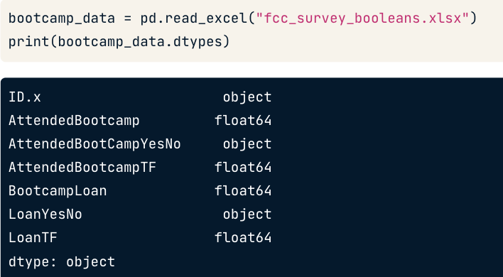 read_excel 에 dtype 인수로 부울 컬럼을 지정하는 dictionary를 전달할 수 있다.
