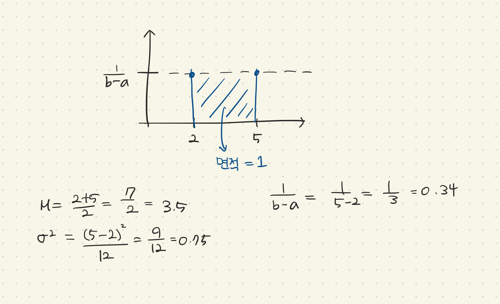 균등분포 (=균일분포)는 각 사상이 일어나는 확률이 같은 분포이다.
