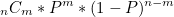 3회 시행으로 1회 성공하고 2회 실패하는 조합의 수(combination) * P(x=1,x=0,x=0) = 3 * 0.125 = 0.375