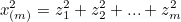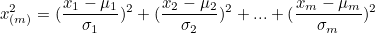 표준정규분포에서 추출된 m개의 독립된 변수들의 카이제곱 통계량은 아래 식과 같다. - 표준정규분포에서 추출했기 때문에 z임