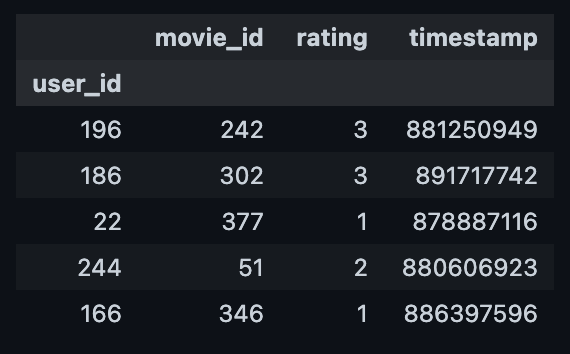 ratings = pd.read_csv('./u.data', sep='\t', names=r_cols, encoding='latin-1')