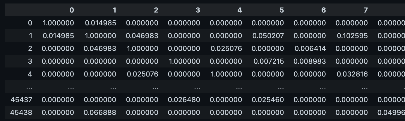 cosine_sim = cosine_similarity(tfidf_matrix, tfidf_matrix)