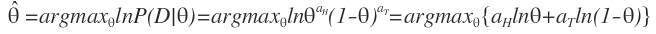 P(H) = θ, P(T) = 1-θ : Head가 나올 확률이 θ이면 Tail이 나올 확률은 1-θ이다.