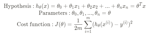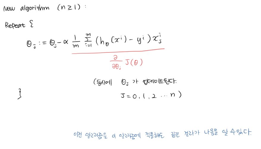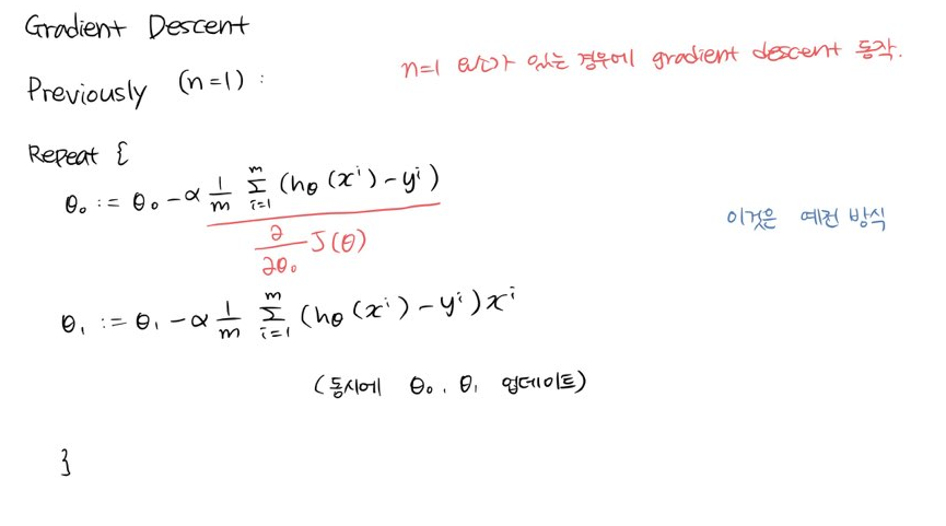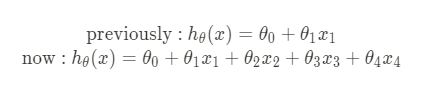만약 n개의 features가 있다면 그만큼 파라미터와 수식 늘어나게된다.